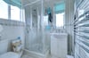 1.79m x 1.78m (5' 10" x 5' 10"). Obscure double glazed windows to front and side, low-level flush WC, hand wash basin set on base and drawer units, shower cubicle, tiled walls, chrome hand towel radiator, vinyl flooring.