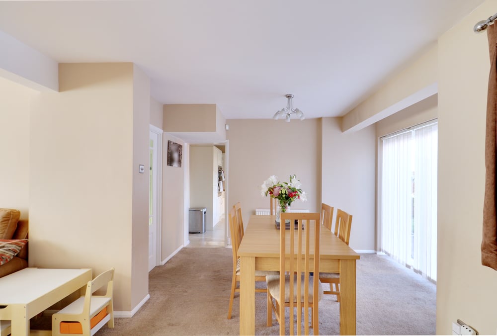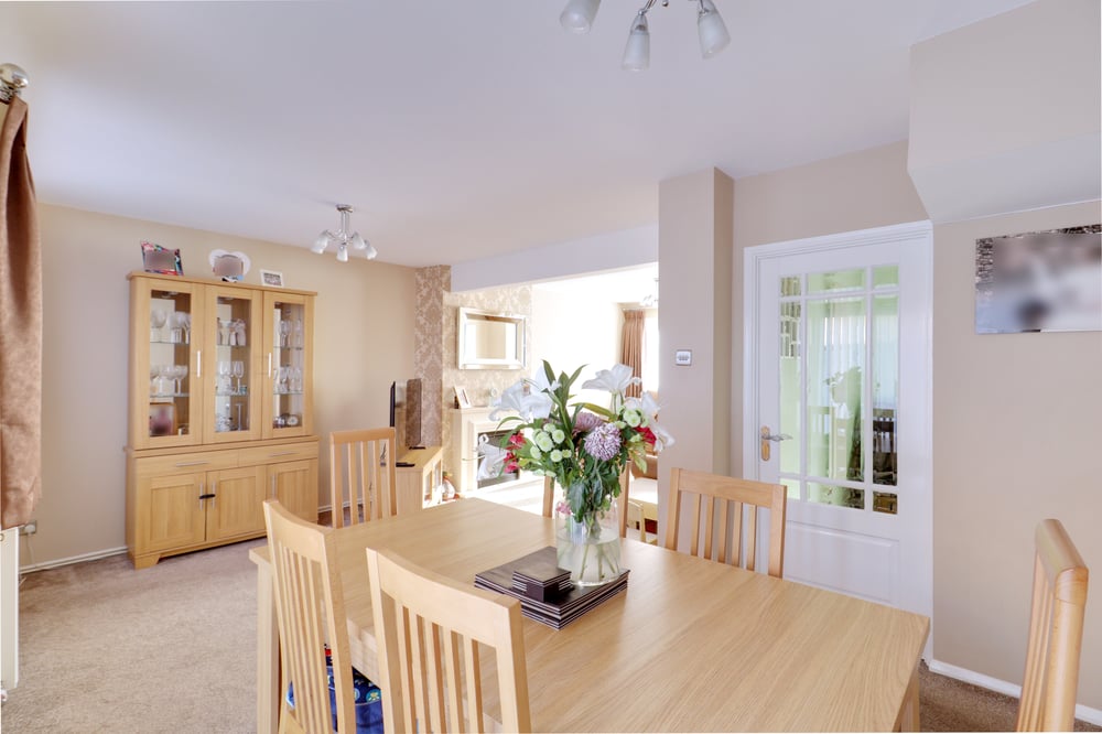 7.63m x 3.48m (25' 0" x 11' 5") Double glazed bay windows to front, feature fireplace, double glazed windows to rear, three radiators, fitted carpet, uPVC framed double glazed sliding door to rear opening to rear garden.