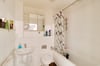 2.09m x 1.94m (6' 10" x 6' 4"). Panelled bath, shower, low level flush WC, hand wash basin, part tiled walls, radiator, vinyl flooring.