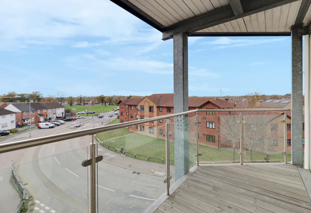 Reception area: 4.78m x 4.58m (15' 8" x 15' 0"). Double glazed window to rear, double glazed double doors to side opening to balcony, radiator, high gloss laminate flooring.