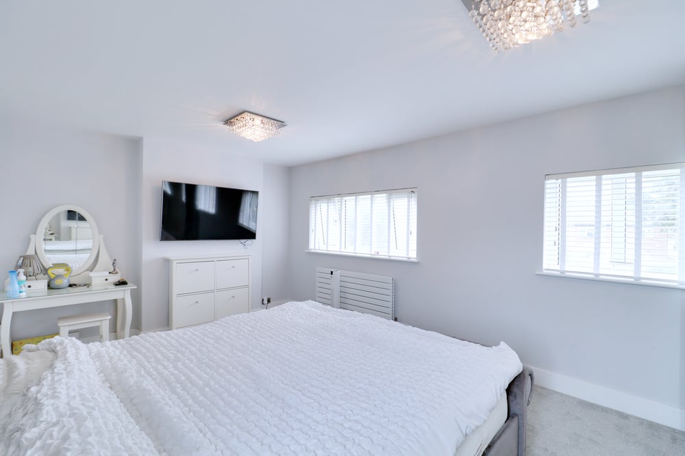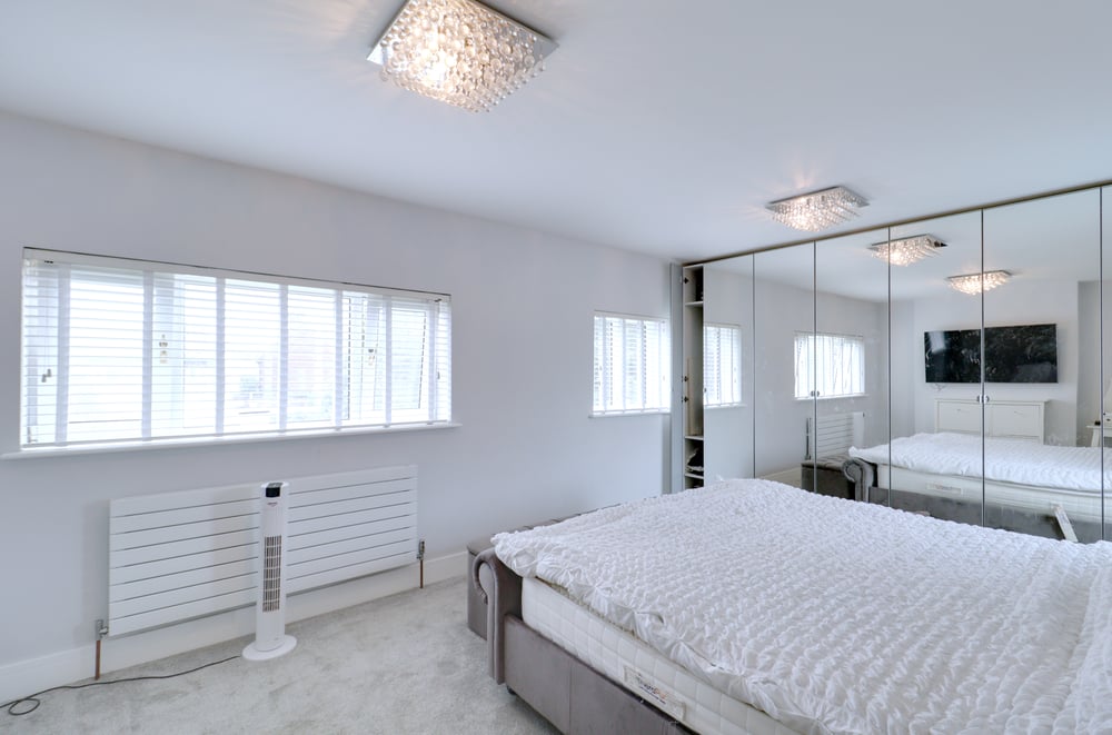 5.47m (Into fitted wardrobes) x 3.58m (17' 11" x 11' 9") Double glazed windows to front, radiator, fitted carpet, fitted wardrobes with mirror doors, uPVC door to front opening to balcony.