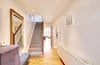 Under-stairs storage cupboard, radiator, inset spotlights to ceiling, hardwood flooring.