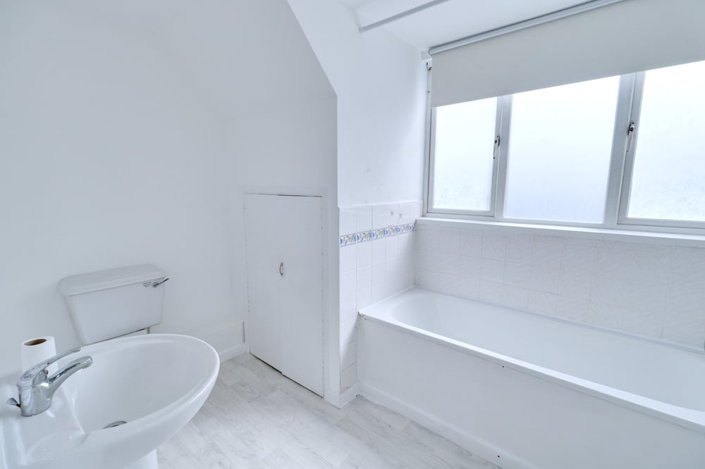 2.95m x 2.21m (9' 8" x 7' 3") (Max) Obscure double glazed windows to front, panelled bath, shower, low-level flush WC, hand wash basin, built in storage cupboard housing water tank, tiled walls, vinyl flooring.