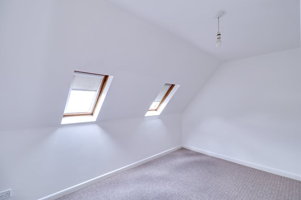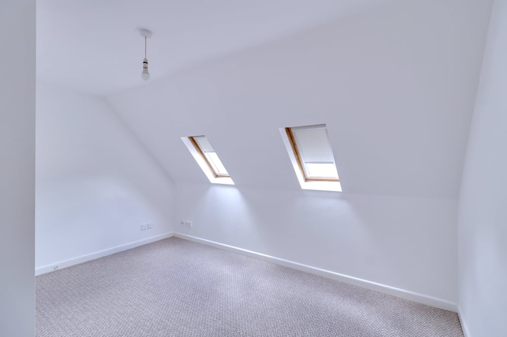 4.03m x 3.31m (13' 3" x 10' 10") > 2.38m (7' 10") Two skylight windows with blackout blinds to rear ceiling, fitted carpet.