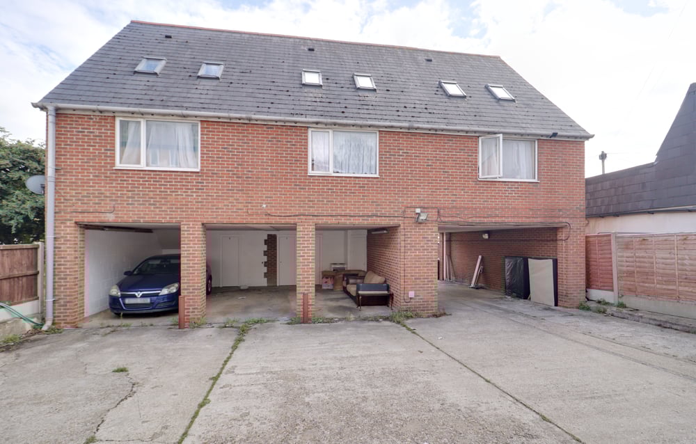 Giving off street parking for one car and a built in storage cupboard.