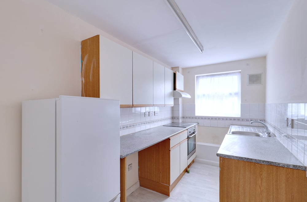 4.02m x 1.89m (13' 2" x 6' 2") Double glazed windows to front, a range of matching wall and base units, laminate work surfaces, inset sink and drainer with mixer tap, integrated oven, four ring electric hob, extractor hood, space and plumbing for appliances, space for freestanding fridge freezer, tiled splashbacks, vinyl flooring.