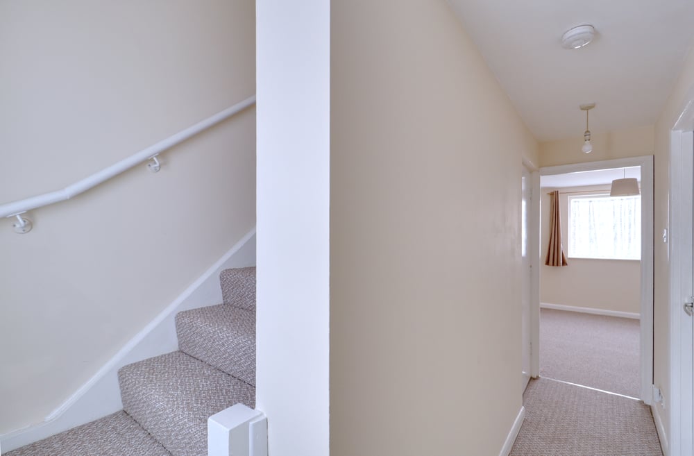 Loft hatch to ceiling with integral pull-down ladder leading to fully boarded loft, fitted carpet.