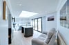 7.35m x 5.72m (24' 1" x 18' 9") (Max). Kitchen area: spotlights to ceiling, a range of matching wall and base units, quartz worksurface, four ring induction hob, extractor hood, integrated oven, space for American style fridge freezer, porcelain tiled flooring, radiator.