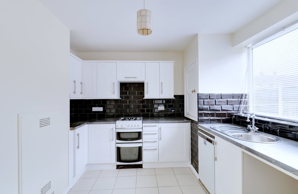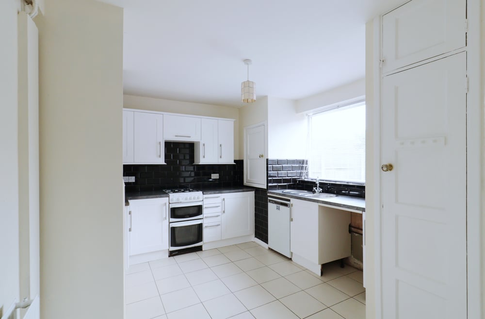 5.06m > 3.88m x 3.13m (16' 7" > 12' 9" x 10' 3"). Double glazed windows to rear, a range of matching wall and base units, laminated work surfaces, inset sink & drainer with mixer tap, space for double cooker, space and plumbing for appliance, space for fridge, tiled splashbacks, radiator, tiled flooring, built-in storage cupboards.