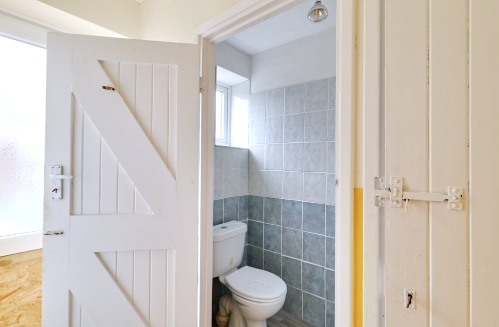 1.31m x 0.98m (4' 4" x 3' 3"). Double glazed window to rear, low-level flush WC, tiled walls, vinyl flooring.
