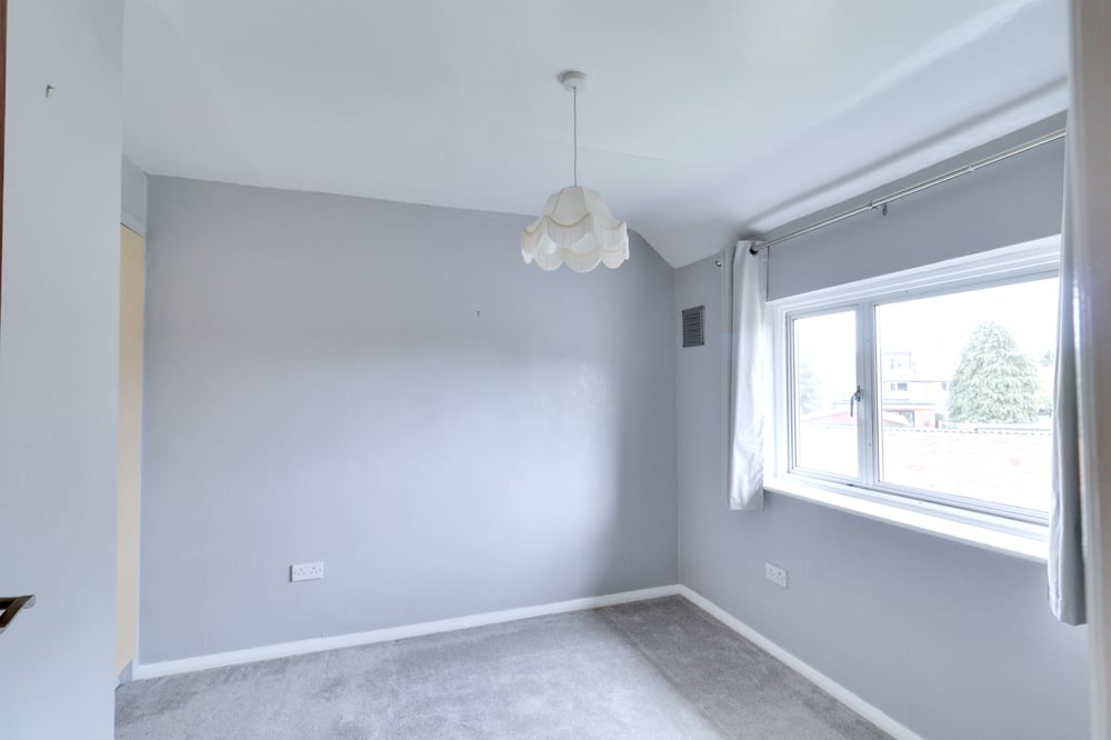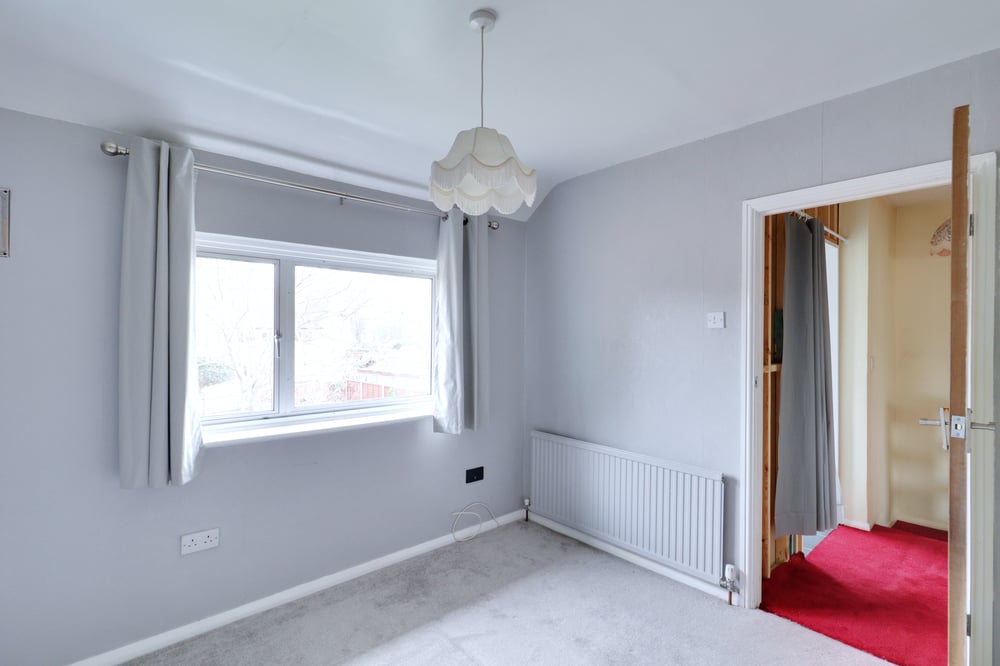 Loft hatch to ceiling, built-in storage cupboard, fitted carpet.