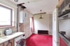 5.02m x 2.52m (16' 6" x 8' 3"). Double glazed windows to rear, a range of matching wall and base units, laminate work surfaces, one and a half bowl inset sink and drainer with mixer tap, integrated double oven, four ring gas hob, extractor hood, space and plumbing for washing machine, space for freestanding fridge freezer, tiled splashbacks, part fitted carpet, black radiator, boiler, under-stairs storage cupboard, uPVC double glazed door to rear opening to rear garden.