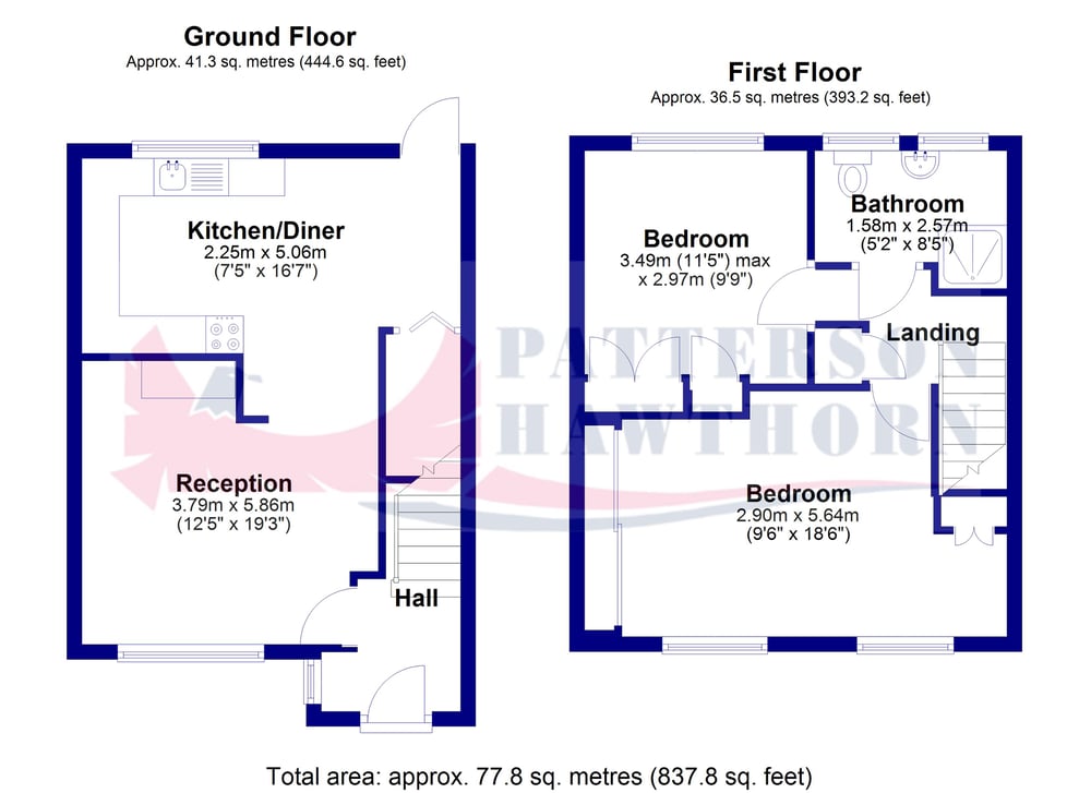 Approximately 60’ max. Immediate hardstanding area, remainder laid to lawn, timber shed, access to front via timber gate through shared walkway.