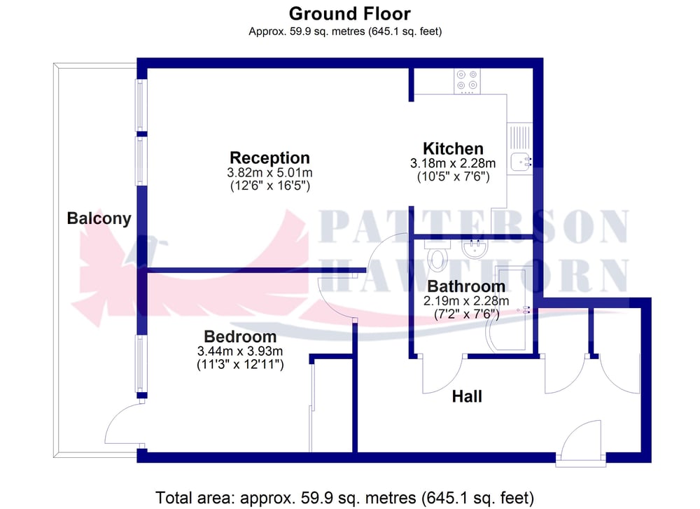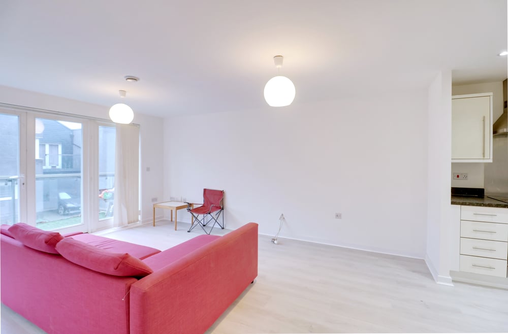 5.02m x 3.82m (16' 6" x 12' 6") Double glazed windows to front, radiator, laminate flooring, uPVC framed double glazed door to front opening to balcony.