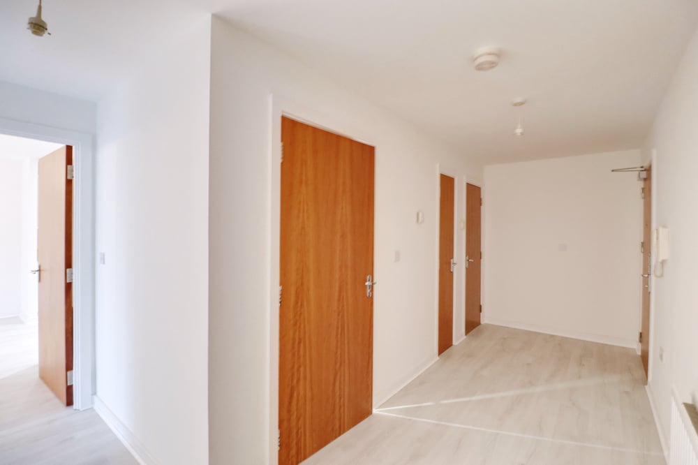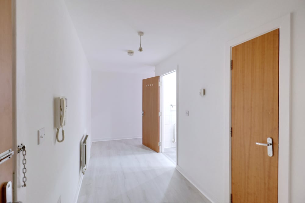 5.44m x 3.44m (17' 10" x 11' 3") Two built-in storage cupboards, radiator, wall mounted security video entrance phone, laminate flooring.