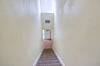 Built-in shed next to property front entrance, paved pathway.